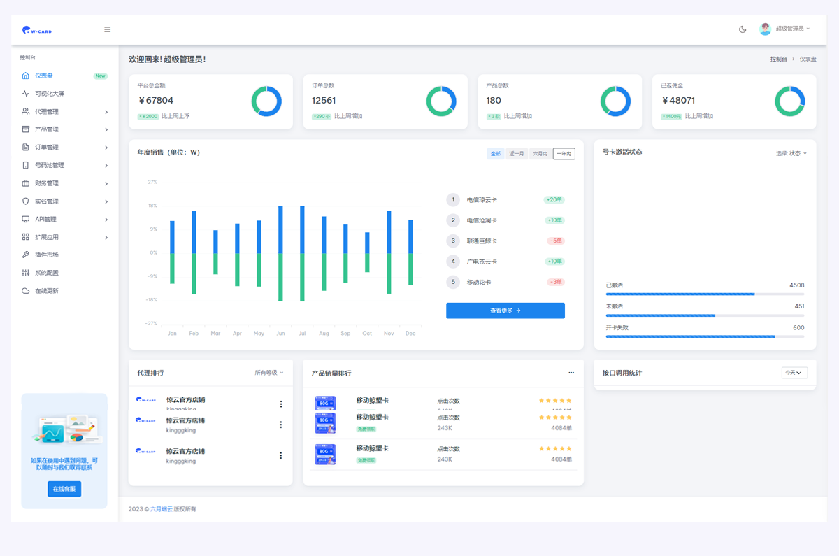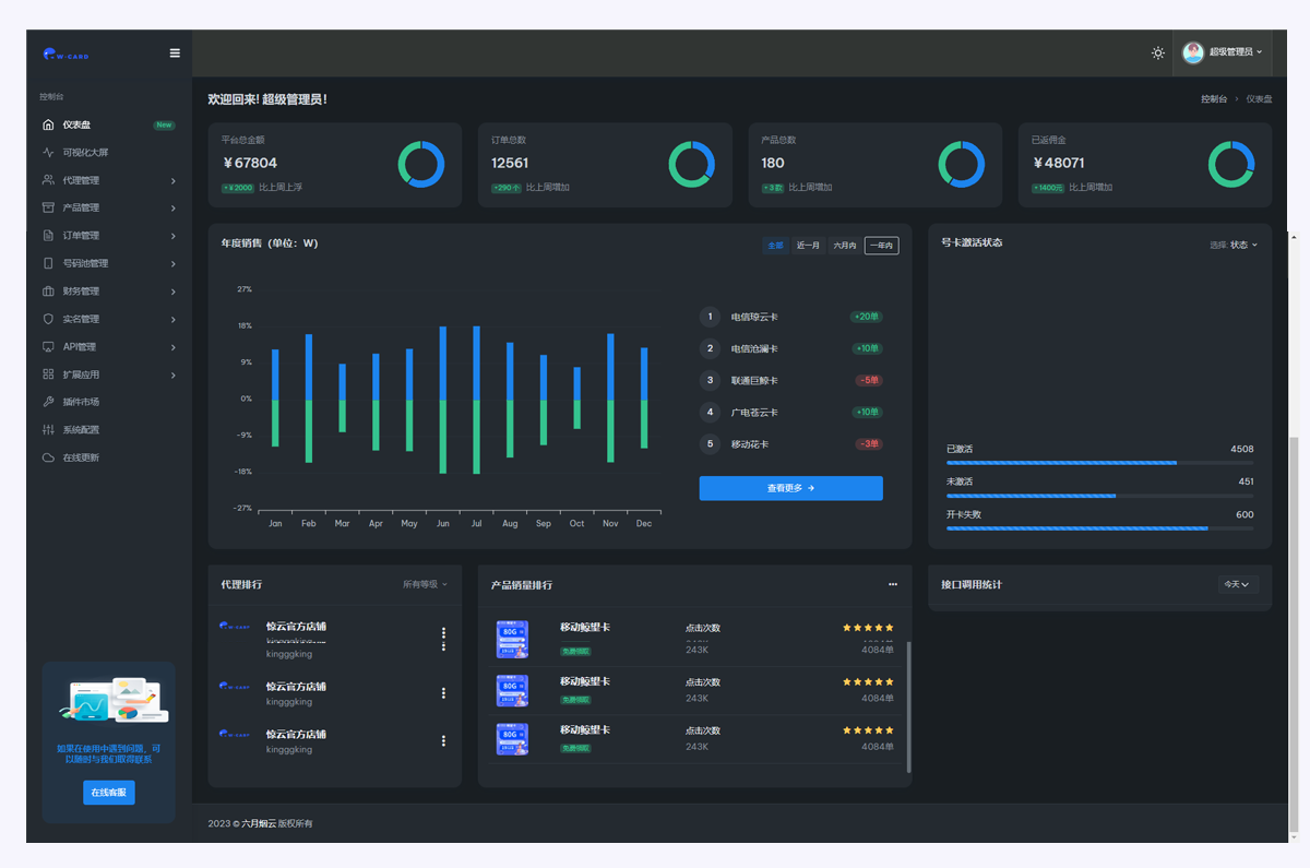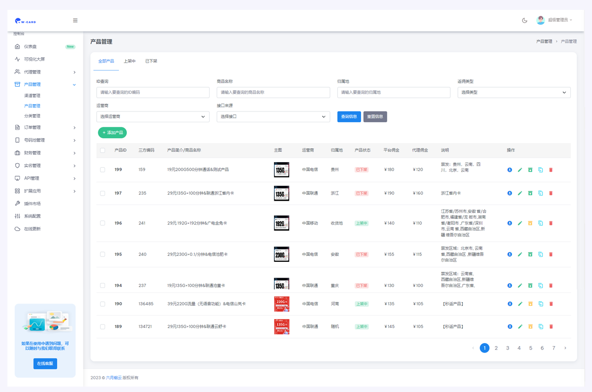 使用玖玖号卡系统,轻松管理代理商品,对接上下游,对接运营商!